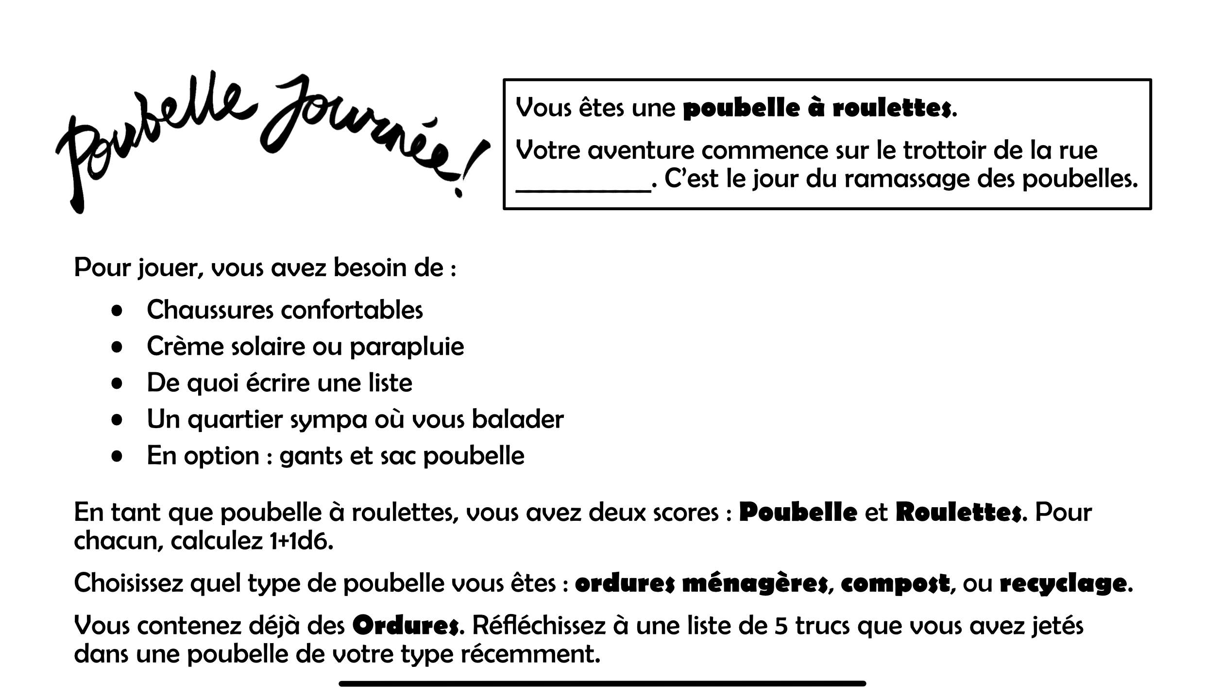| Tags | francais, kiwirpg, No AI, One-page, Solo RPG, trashcore, Tabletop role-playing game |